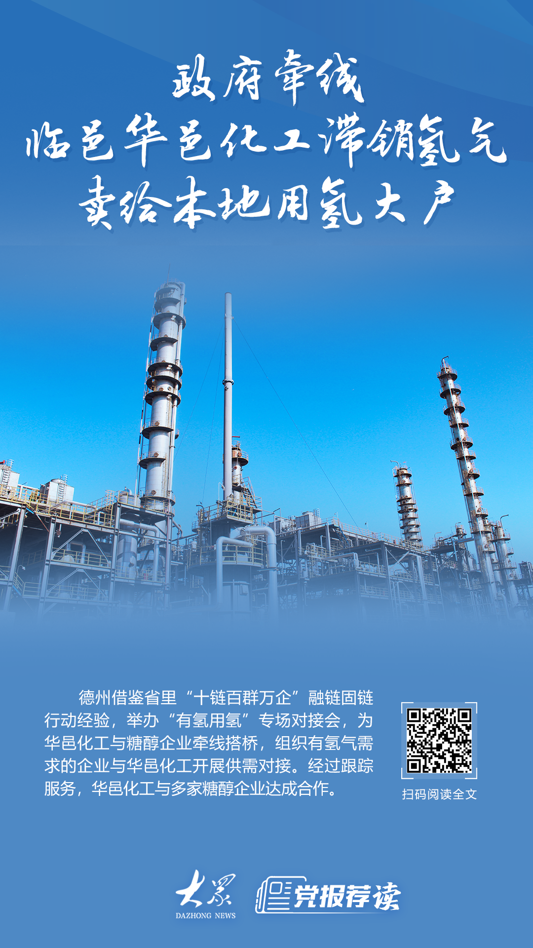 政府牵线,临邑华邑化工滞销氢气卖到土产货用氢大户